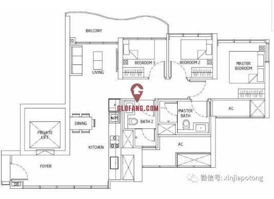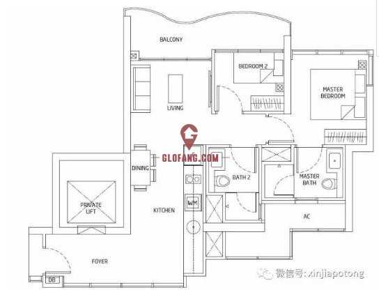 2房户型,75平方米/807平方英尺,自带私人电梯直接入户哦,价格131.2万新币起,数量有限!!!