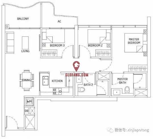 3房户型,75平方米/807平方英尺,20楼以上的高楼单位价格新币147.9万起,享受漂亮景观.(3房共有8总不同户型,看房时可以了解更多)