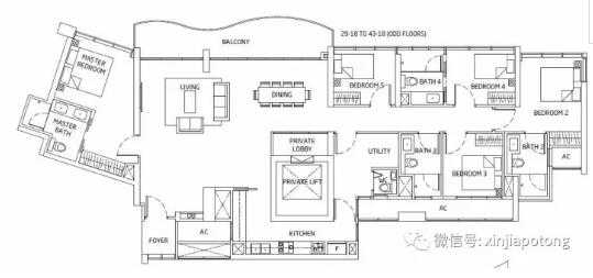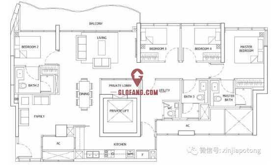 4房户型,140平方米/1507平方英尺,尊贵象征的私人电梯直接入户,价格新币235.6万起