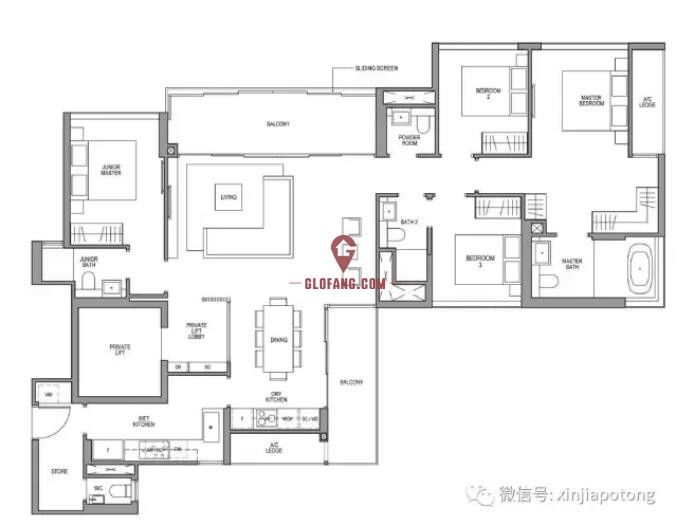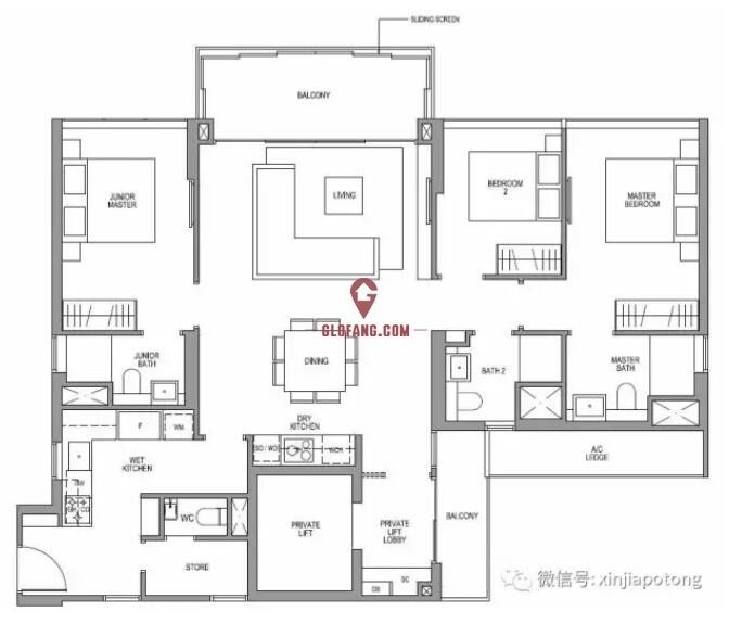 4卧室豪华型,161平方米/1733平方英尺,自带私人电梯直接入户,2个阳台朝向漂亮景观,主卧卫生间带浴缸,可以玩泡澡,厨房为干,湿两部分,3个房间在右侧,只有小主人房/Junior Master在房子的左侧,如果碰上有亲戚朋友过来玩,可以安排小主人房当客房用哦.价格为475.5万新币起