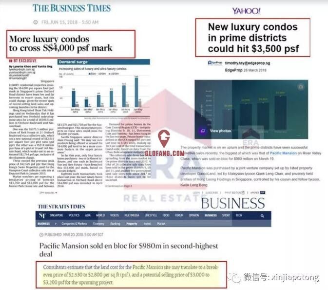 据新加坡商业时报Business Times报道,新加坡豪华公寓已经超过$4000/平方英尺的单价。