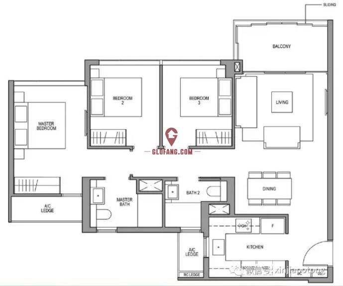 3卧室标准型,101平方米/1087平方英尺,户型方正,方便家私摆设,每个房间够大,可以放置双人床,设计做到房子得到充分利用,没浪费面积!价格317.3万起