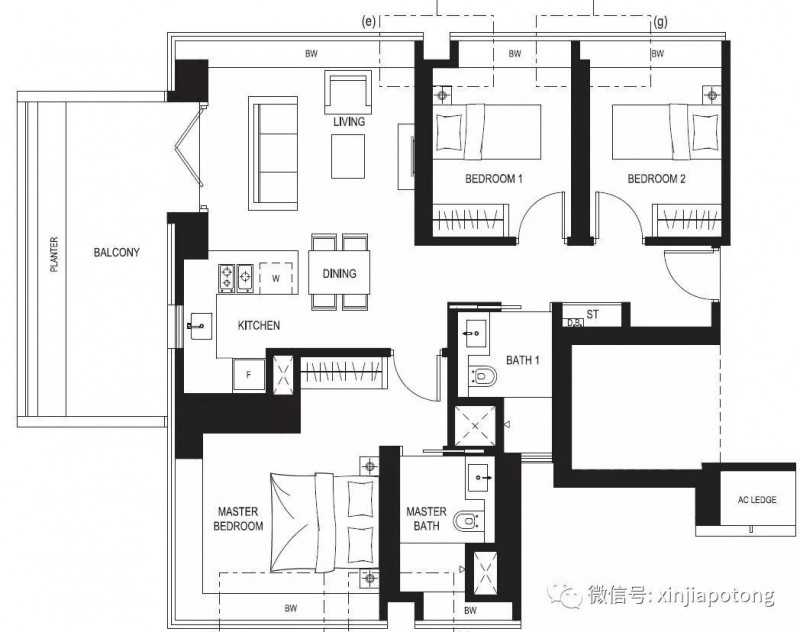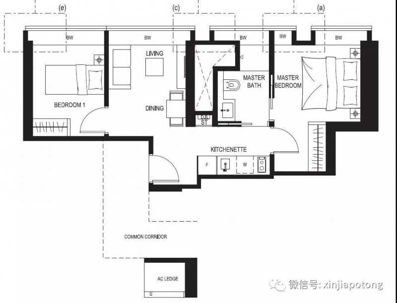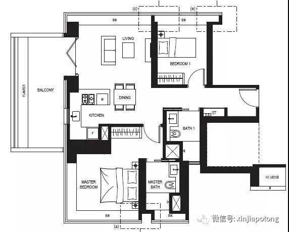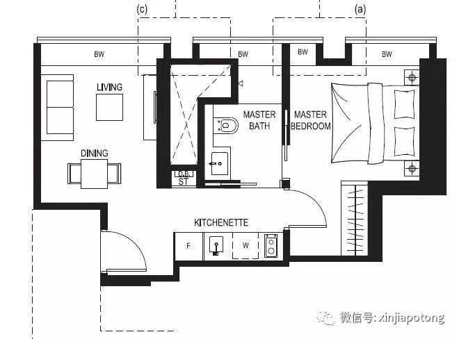 1房,41平方米/441平方英尺,适合单身或情侣住,价格145.7万新币起