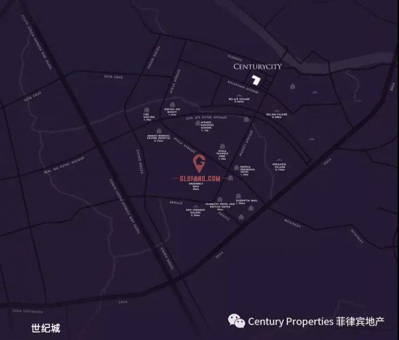 Century Spire是马卡蒂高端住宅与商业社区,世纪城8座摩天楼中的其中一座。另七座大厦为: Gramercy 公寓、Knightsbridge公寓、 VERSACE HOME承担室内设计的Milano 公寓、 门诊医疗与信息科技大厦-马卡蒂Centuria医疗中心、Trump 大厦、Forbes 媒体大厦、 以及享有盛名的Century City 购物商场。