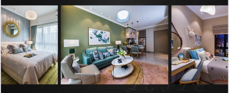 拥有四个户型面积:616平方尺-1157平方尺(57平米-107平米)