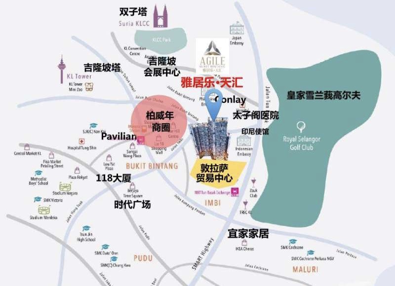 雅居乐.天汇位于马来西亚首都吉隆坡黄金三角区,在敦拉萨和武吉免登路交界处,