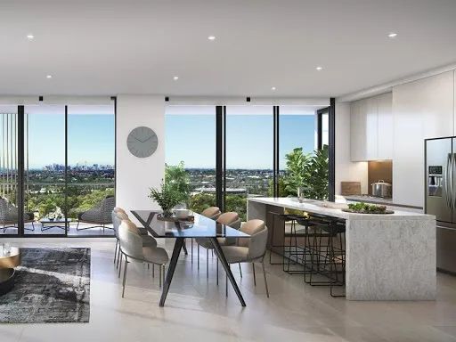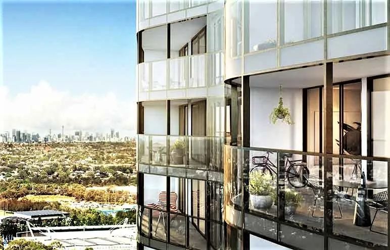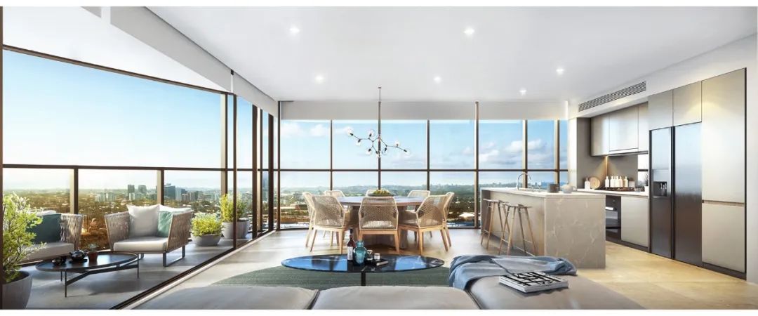 The Retreat 第一期 Aura 为目前Olympic Park地区观景楼,如图中玻璃落地窗的观景设计,70%面向北方和东边的公园和水景,被天然氧吧环绕,俯视Homebush河湾,远眺市区城市天际线,随时呼吸新鲜空气,低层复式户型附送超大露台,在自己的私人花园内尽览小区2500平米配套绿化,5层以上有绝佳观景体验,东北面尽览City View,西面尽观蓝山。