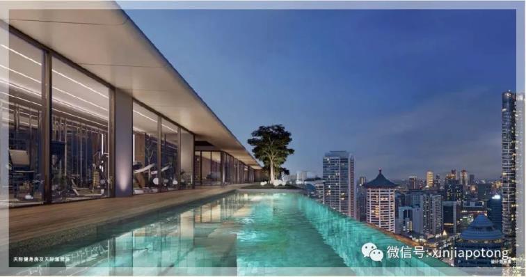 顶层位于29层,主打“天际”概念,50米长天际无边游泳池、天际观景台、天际俱乐部、天际健身房、天际温泉浴、天际休闲厅、天际草坪、住户礼宾服务台,可以去顶楼欣赏乌节路美丽景观,还配备两个烧烤台,享受美景和美食两不误