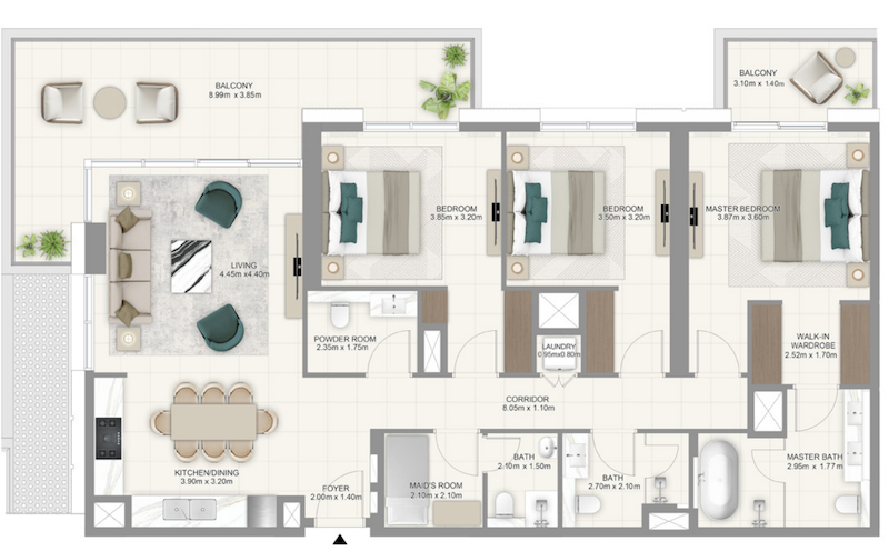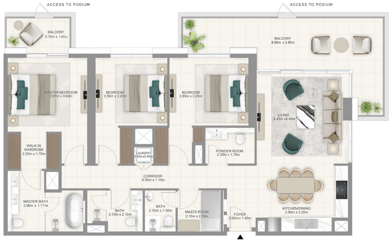 社区中拥有无与伦比的绿化面积,从您的家中即可欣赏到郁郁葱葱的绿林美景,欣赏令人惊叹的迪拜天际线景色。