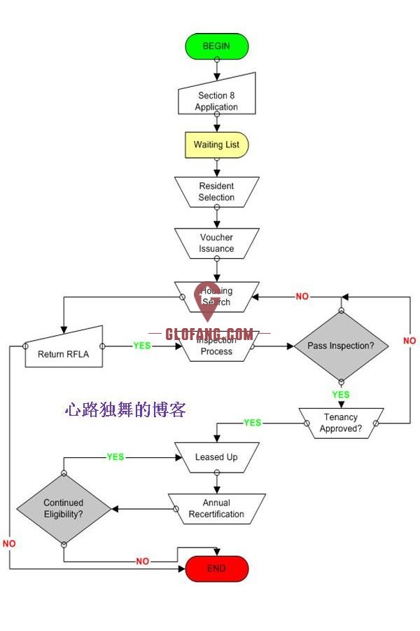政府网站公布的满足 Section 8 福利的收入标准(随地区变化)和申请的流程图