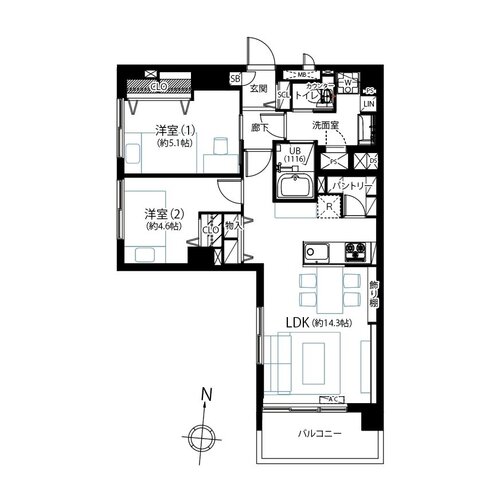 g取り (户型): 2LDK + パントリ` (2LDK + 食品储藏室)