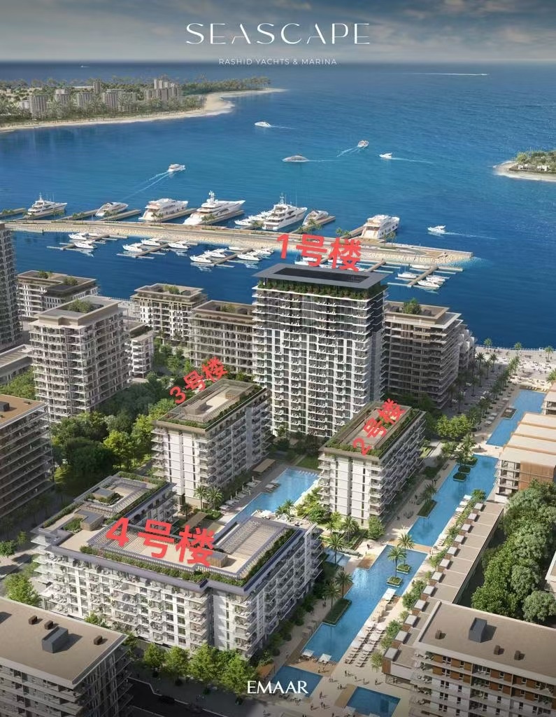 迪拜房产:迪拜二手期房,澜风港Mina Rashid海景2房出售