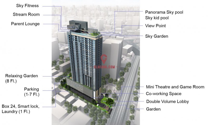无边际的全景泳池、亲子休闲区、全视野空中健身房、屋顶全景花园、楼顶观景台, 1.14莱(约1890平方米)的绿地、双倍挑高大堂、会议室、共创空间、游戏间、迷你电影院 、 智能门锁系统 Box 24、 洗衣房、安全:24小时物业、门禁卡、监视录影器