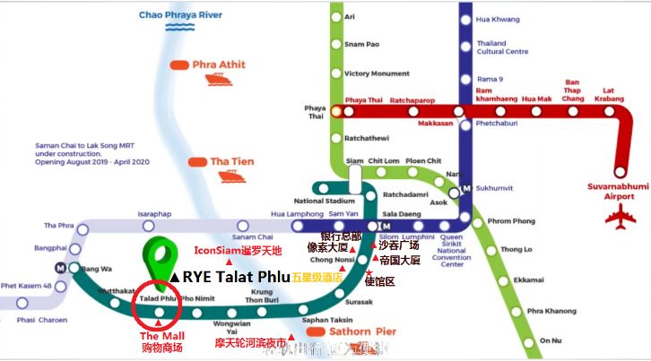 项目位于沙吞CBD经济辐射圈Talat Phlu附近,280米直达BTS 深绿色线 Talat Phlu站,乘坐5站即可到底沙吞核心CBD商圈!换乘Golden金色线、MRT蓝色闭环,曼谷各地区轻松而至。