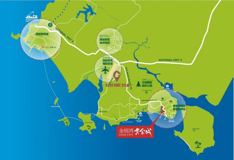 项目位置: 西港云壤国家森林公园金银湾国际旅游度假区内