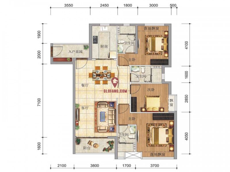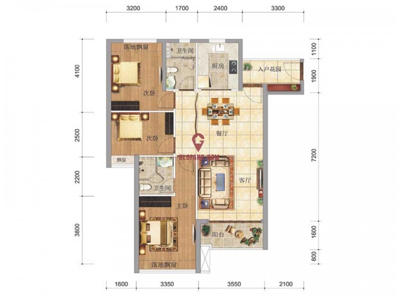 户型规格: 赠送落地飘窗及花池,花池预估3至4O