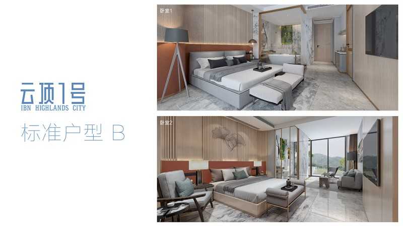 项目配有全精装修五星级酒店公寓产品、多种户型,每栋酒店公寓配置4部高速电梯(一部为货梯),保证安全、快捷、无障碍的垂直交通,单独设立挑空中庭,常年自然通风采光。同时项目高层均设计有无边际泳池,泳池与云顶山水、云雾相绕,社区景色融合,设计非常独特、工艺先进,独一无二的视觉效果。大面积户型配有超大阳台和私家泳池,在无边际游泳池左右两旁配有更衣间,无边际泳池层还增设了观光平台、遮阳休闲椅、精致的园林设计,将涵盖健身、儿童娱乐、老年休闲、医疗、等完善的商业配套。