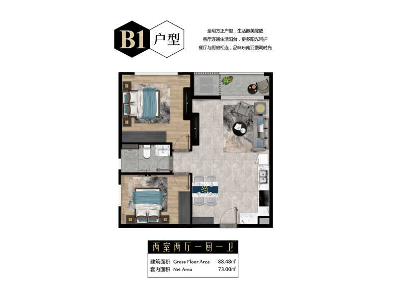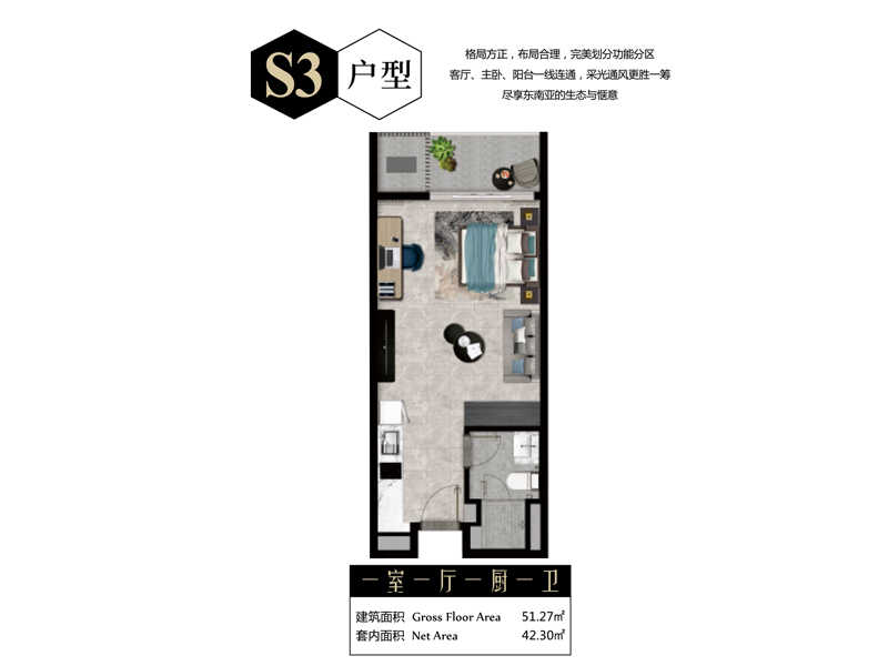 项目引进新加坡设计师 Modern Tropical 创新理念,独具匠心45°空间布局,让建筑美学、生活品质完美融合,缔造户户观景的居住极致;更以43-96平方米全精装轻奢公寓、82%的超高得房率,堪比度假胜地的东南亚生态园林,共同为您演绎生活的优雅与闲适,以及财富的无限可能。