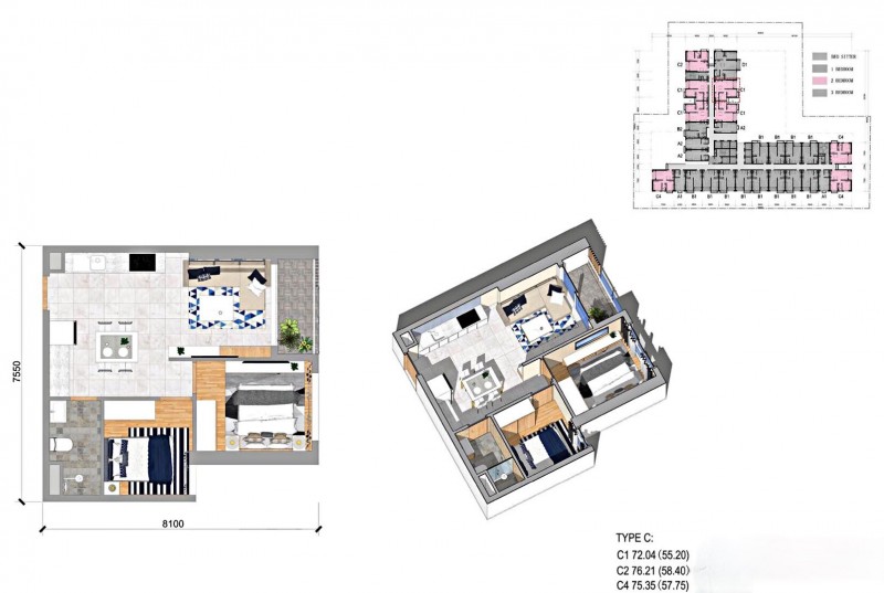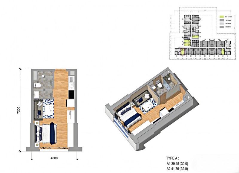 【户型面积】39-42O(单间)、57O(一房一卫)、72-76O(两房一卫)、111O (三房两卫)