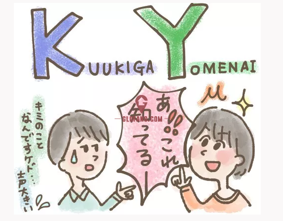 如果说开头提到的KY式日语是这一类词的总称,那么这里的KY一定是具有发源性质的。首先KY是由“空(K)”和“i(Y)”的首字母构成,是指读不懂气氛或是说话不分场合的人,多多少少带有一些贬义的色彩。在汉语和日语中,虽然有这种说法,但是却没有单独的词语来形容,所以缩略成英文能够更简洁的表达出意思,同样也成为了这一类词汇的发祥。