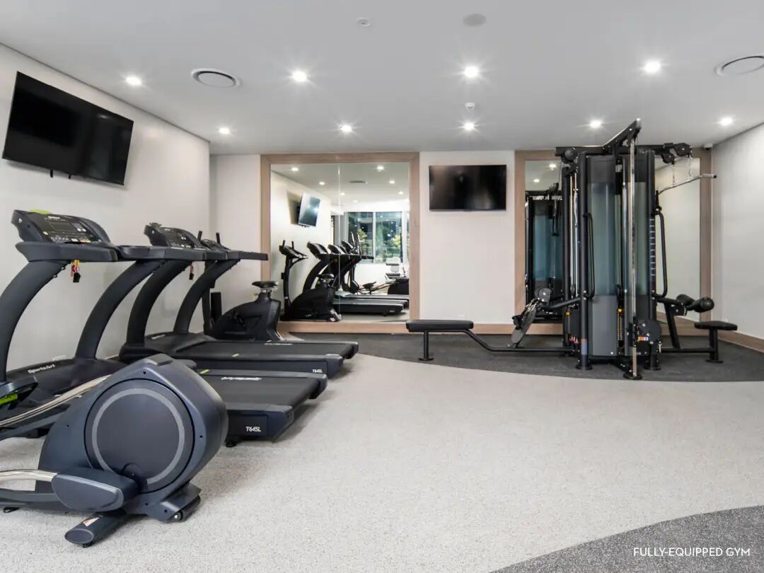 器材齐备的室内健身房和桑拿房