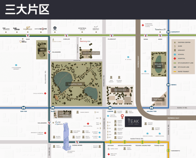 御宅菌虽然住在Sukhumvit 素坤逸,但这么多年来最爱的地段还是——Central Lumpini 中央伦披尼。为什么呢?因为太!有!逼!格!了!Central Lumpini 中央伦披尼放眼望去,全是豪宅,全是五星级酒店,全是顶级商场,全是甲级写字楼,全是大使馆,全是皇家的土地……