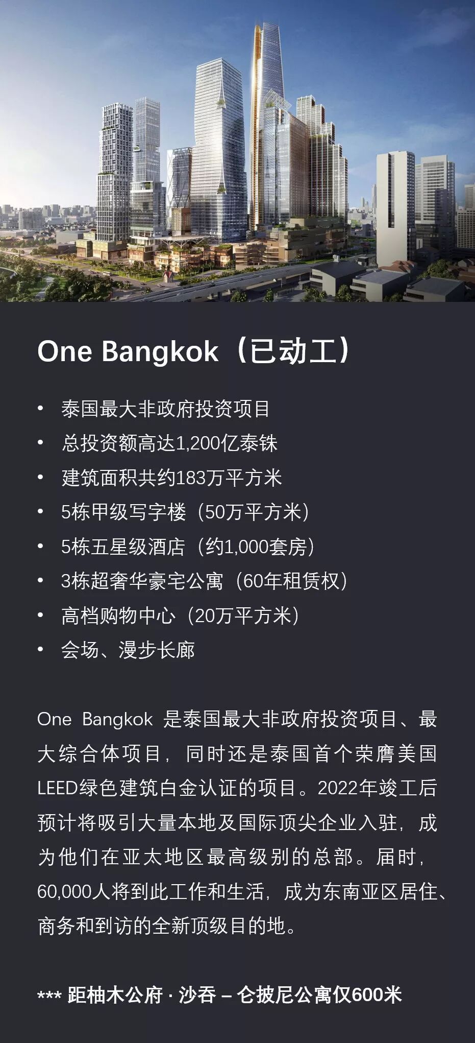 泰国最大非政府投资项目——One Bangkok 世界级超奢华综合体(600米);