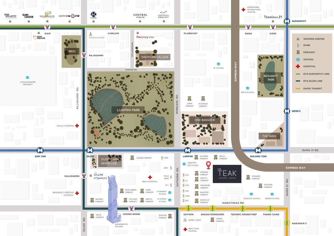 柚木公府 · 沙吞 – 伦披尼紧邻四座举世瞩目的超级综合体,包括正在兴建中的泰国最大非政府投资项目One Bangkok 世界级奢华综合体,仅600米即可轻松抵达。