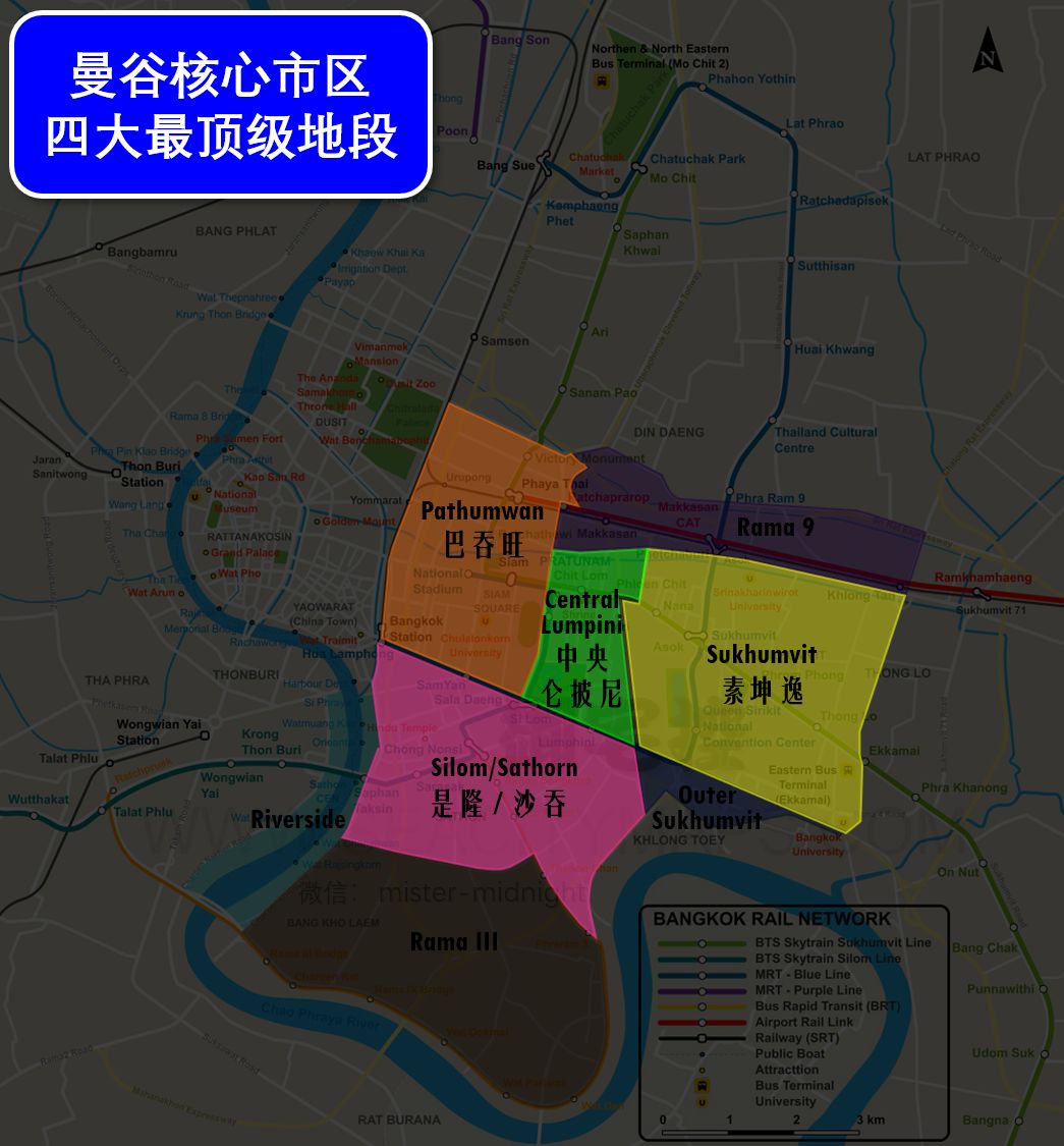 这三大片区已有超过一个世纪的发展历史,远在轻轨和地铁没有修建之前,这三大片区就已成为了曼谷最为繁华的顶级地段。