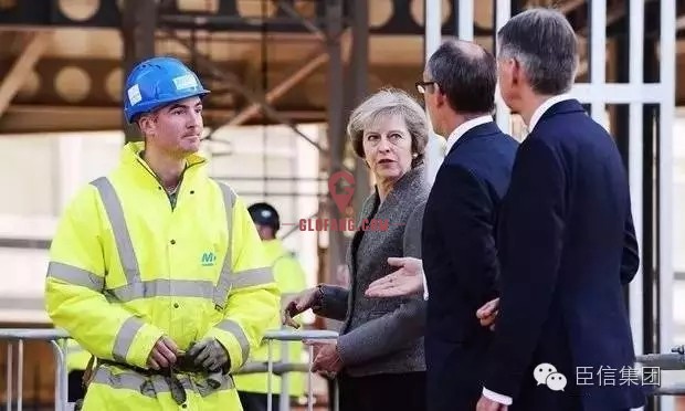 此前特雷莎・梅亲自到访汇丰银行伯明翰总部新大楼工地。