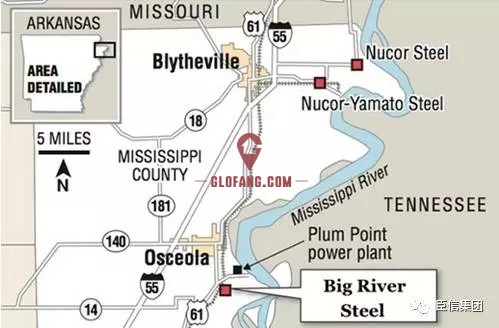 大河钢铁厂项目是由科氏工业,TPG,阿肯色退休教师基金以及德国国有开发银行KFW共同投资打造的一家位于阿肯色州密西西比郡的废金属回收和钢铁生产厂。