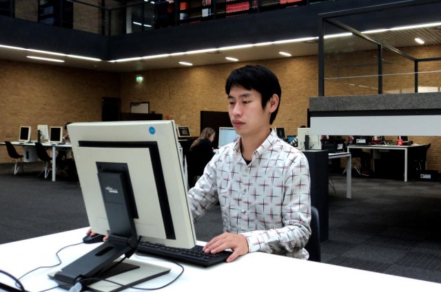 25岁的吴斌来自浙江宁波市,本科时以优异的成绩入选学校的留学项目,目前在德国理工科高校联盟TU9攻读硕士学位。漂在德国,吴斌总是忘不了父母的叮嘱:好好学习,将来报效祖国。图为吴斌在德国大学图书馆自习。